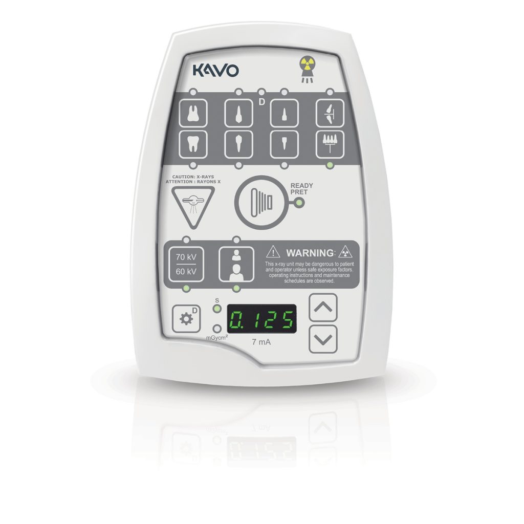 Intuitive control panel with pre-programmed exposure settings for all areas of both adult and paediatric dentitions.